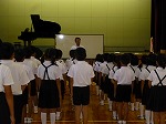 夏休みの思い出と2学期のがんばることを、学年代表の児童が発表しました。