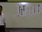 「義を見て為ざるは、勇なきなり」 児童の皆さん。これは、昔中国から伝わった「論語」のひとつです。どういう意味かと言いますと・・・・・。 2学期の校長先生のお話は、「論語」から始まりました。子どもたちは、この「論語」を教えていただいて、人として正しい道を歩んでくれると思います。