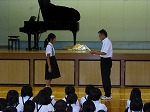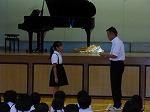 硬筆展と「ふるさとまつり」のポスターの表彰をしました。たくさんの児童が入賞しました。代表の児童に賞状を渡しました。