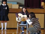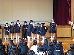 歌声の響く 児童朝礼 10月27日(月) 毎週月曜日に行われる児童朝礼。最終の週は、今月の歌を歌います。今月は、低学年が「カントリーロード」、高学年が「花は咲く」を歌いました。低学年の「カントリーロード」では、ALTのアンジェラ先生のギター伴奏でさわやかに歌いました。高学年は、高学年らしく美しい声で歌うことができました。ギターを弾けるALT。何て素敵なんでしょう。