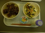 さて、今日の給食の献立ですが、「クーブイリチー丼、マーミナチャンプルー、パインゼリー、牛乳」でした。日本全国味巡り「沖縄県」のメニューでした。とってもおいしかったです。沖縄に行かなくても、雰囲気だけでも、味わわせていただきました。給食センターの皆さん、ありがとうございました。随時給食についても、保護者の皆様におしらせします。お楽しみに。