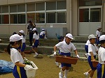 6月9日(月)新見南小学校花いっぱい運動 心配していた雨も降らず、よい天気のもとで「新見南小学校花いっぱい運動」がおこなわれました。当日は、急なお願いでしたが11名のボランティアの方の参加をいただきました。1年生13名、2年生11名、5年生12名が一緒に花の苗植えをしてくれました。最初に、ボランティアの皆さんが、土づくりとプランターへの土入れをしてくださいました。本当に助かります。次に、藤澤清さんから花の苗の植え方を丁寧に教えていただきました。健康の森学園の先生と生徒が一生懸命育てた苗を植えました。150本あまりの苗も30分ほどで、50個のプランターに植えることができました。ボランティアの皆様のご協力に感謝し、子どもたちの頑張りに拍手を送りたいと思います。子どもたちからは「一緒に植えて楽しかった。」「大事に育てたい。」という感想がありました。5年生の三村さんから「私たちのために来てくださってありがとうございます。」とお礼の言葉もありました。コーディネーターの石本利之さんより「これからも、いっしょにいろいろな活動をしていきましょう。」という言葉をいただき、記念撮影をして終わりました。