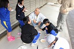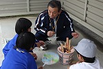 学校支援ボランティアの石本さん、三村さん、古米さん、村下さんをお迎えして、社会科の授業の始まりです。今日の授業は「マッチを擦って火を新聞紙に付ける」「火を燃やして、炭をおこす」というものです。3年生15人中マッチを擦って火を付けたことがある児童は、なんと3人。