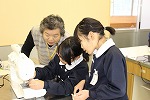 11月に引き続き、学校支援ボランティアの方の支援を受け、5年のナップサック作りがありました。前期でも支援をしていただきましたが、その頃と比べるとミシンの使い方も慣れてきました。学校支援ボランティアの綱島さん、西さん、小林さんの支援のおかげで作業もはかどりました。