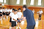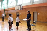 昨年から外国語活動(英語)のALTとしてお世話になったディビッド先生。今日でお別れでした。授業だけでなく、休み時間は一緒に遊び、掃除も児童と一緒に取り組んでいました。給食もいろいろな学年と一緒に食べ、日本食で嫌いなものは全くなかったそうです。今日の給食に出た冷凍みかんは、とてもおいしかったそうです。(カナダには、冷凍みかんがないそうで、ぜひ作って食べるそうです。)業間の時間に、全校児童とのお別れ会をしました。校長先生のお話のあと、6年生の代表がプレゼントとお礼の言葉を述べました。ディビッド先生からも温かい言葉をいただきました。(英語と日本語で)最後に全校児童と記念写真を撮りました。