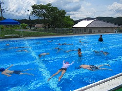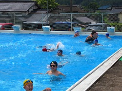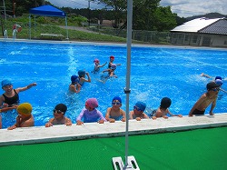 プールに入り、大喜び 3・4年生 今日、3・4年生が全学年の先頭をきって、水泳学習を行いました。まずは、水に慣れることから始め、バディを組んでふし浮きの練習、そして、けのびに挑戦しました。先生の指示にきちんと従い、安全に学習することができました。