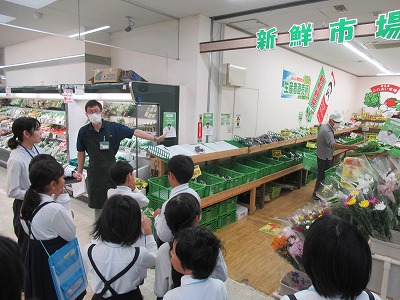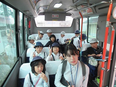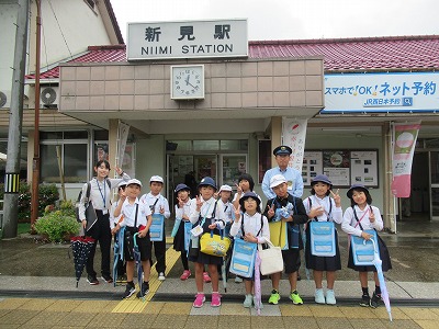 社会科見学【3年生】 10月7日(月) 今日、3年生は、社会科見学で、新見駅とAコープ(スーパーマーケット)の見学に行きました。 刑部駅に集合し、路線バスで新見駅→徒歩でAコープ→徒歩で再び新見駅→JRで刑部駅→徒歩で学校へという、一日のうちにバス・JR・徒歩をフル活用した行程となりました。 バス移動では、乗車時にチケットを取ることに気をつけました。車窓の風景を楽しみながらも、掲示板の乗車金額が上がっていくのにドキドキしました。降車時には、握りしめた250円をチケットとともに料金ボックスに入れることができました。