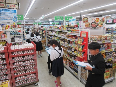 Aコープでは、支店長さんから売り場やバックヤードを案内してもらった後、グループごとに売り場を詳しく見て歩いたり、利用されているお客さんにインタビューを行うことができました。
