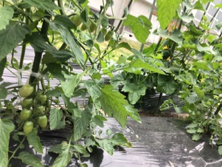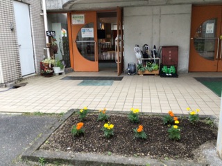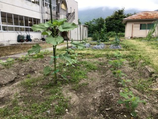 <裏玄関> <学級園の野菜はすくすく育っています。>