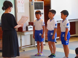 表彰伝達 おめでとう 新見市総合体育大会剣道競技 小学校低学年団体戦の部 第3位 大佐剣道スポーツ少年団 柴田くん、山中くん、矢庭くん