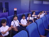 秋の遠足に1~5年生で出かけました。まず最初に、「NHK岡山放送局」のスタジオ見学をしました。TVに出演するキャスターのような体験をさせていただきました。その後、「人と科学の未来館サイピア」に行って、プラネタリウムに入りたくさんの星を観ました。そして、隣の公園でゆっくりと遊んで帰りました。