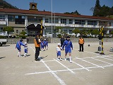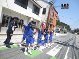 JR新見駅の方々と刑部駐在所の浜村さんにお世話なり、踏切や横断歩道の安全な渡り方ついての指導を受けました。踏切の横断指導では、万一の時の緊急停止通報ボタンの使用法も実際にしてみました。また、外に出て実際に横断歩道の渡り方の指導もしていただきました。
