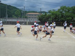 5月17日(水) 今週の日曜日の本番に備え、予行演習を行いました。少し肌寒いですが元気にがんばりました。今年も工夫された楽しい種目が盛りだくさん。特に高学年の「高尾うらじゃ」と低学年の「UFO」はとても見がいがあります。また、思わず笑うようなコミカルな種目やドキドキするような楽しい種目もあります。そして、花形種目のリレーや開・閉会式で見せる表情は真剣できっと見る人に感動を与えます。予行は赤が勝利しました。さあ、本番はどうなるかな?保護者・地域の皆様をはじめ、多くの皆様のご観覧をお願いいたします。