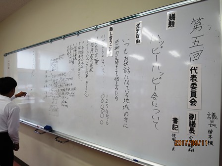 9月11日(月)代表委員会の議題は「ハッピーハッピー会について」です。「いつもお世話になっている家族や地域の方に感謝の気持を伝えるため」に企画委員会が提案しました。
