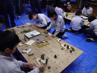 2月21日に、社会科で林業の学習も兼ね、5年生が森林技術支援センターで「森林教室」を行いました。「動物から苗を守るための柵の長さ」や「働く人が花粉症だったら」など子どもならではの質問も出て、充実した学習を行いました。その後はお楽しみの工作です。思い思いに作品を仕上げました。どの作品も個性豊かでした。こどもたちも納得の作品でした。