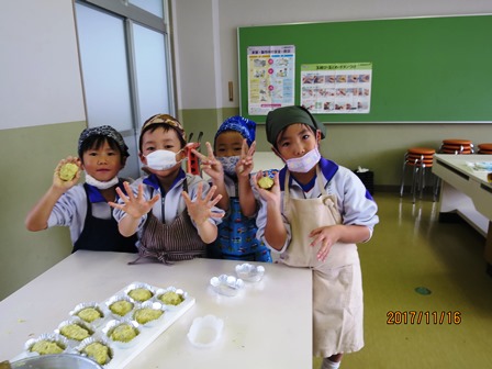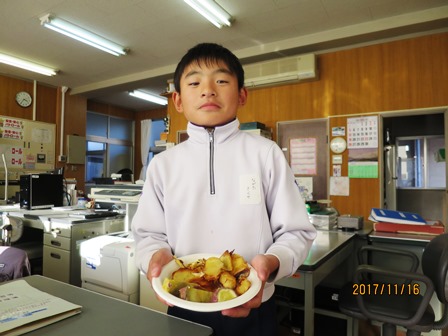 11月16日(木)今日は、1年生と6年生がおいも料理に挑戦しました。1年生はスイートポテト、6年生はふかし芋やチップスなどをそれぞれ上手に作り上げていました。春に畑に植えて育てたさつまいもを秋に収穫し、今日はおいしくいただいたようです。