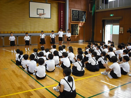 始業式では校長先生から「2学期は84日。頑張る84日にしてほしい。友達と協力し、心を鍛える2学期にしてほしい。」とお話がありました。学年代表の子どもたちも「漢字をしっかり覚えたい。行事を頑張りたい。」などの目標を発表しました。