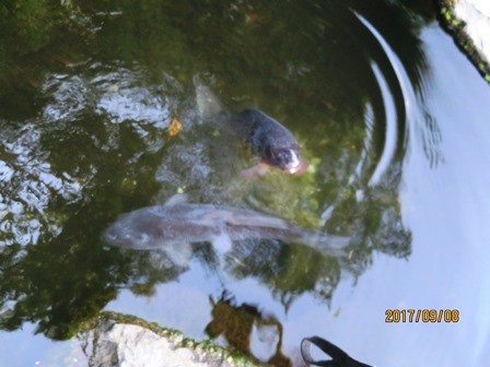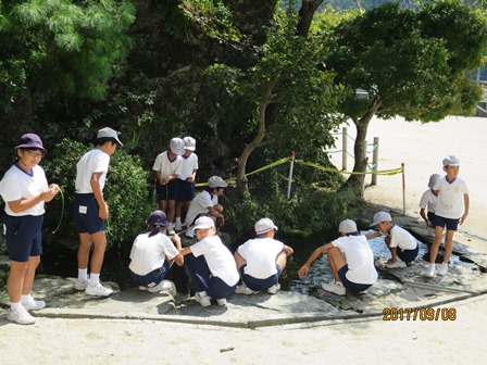 9月8日(金)昼休みの風景です。高尾小学校の池には大きなコイが2匹と大きなナマズが1匹います。いつも子どもたちがエサやりをしています。最近は近くのショウブの葉に餌をつけて釣りのようなことをしています。(もちろん釣れませんが)食いつく様子が楽しいようです。1年生の児童はイモムシを見つけて餌にしたり、自分の指をしゃぶらせてみたりとかなりワイルドです。こんなに親しまれるコイも少ないのではないかと思ってみています。