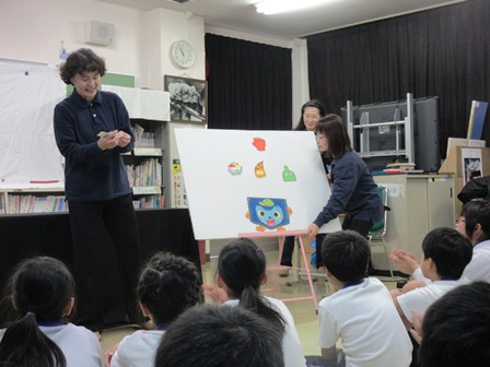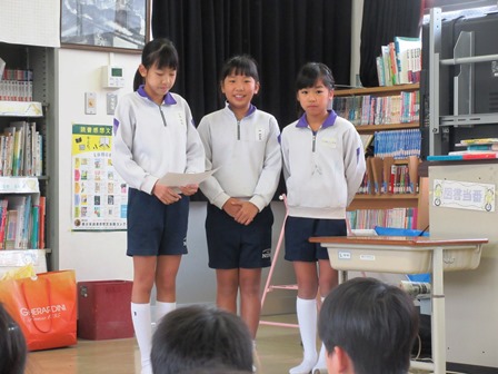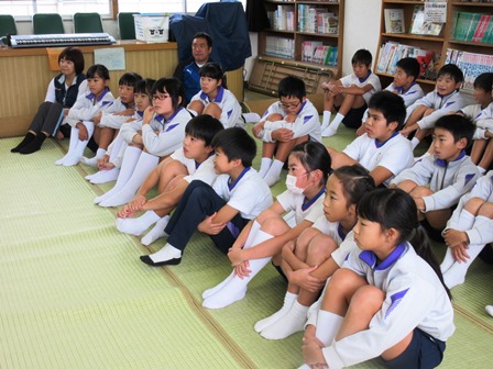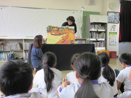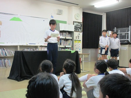 10月23日(月)新見図書館のボランティアの方による読み聞かせが行われました。1〜3年、4〜6年に分かれてききました。ブラックライトや紙芝居などで絵を映しながらのお話に児童は興味深く聞きいっていました。