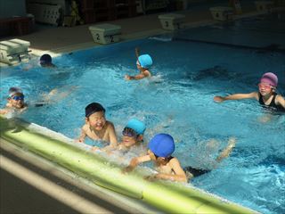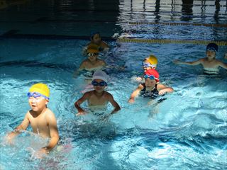 6月5日(月)1~4年生がげんき広場で水泳教室を行いました。プール開き前の今年初めての水泳学習です。インストラクターの方にバタ足やけ伸び、手の搔き方などを丁寧に教えていただきました。子どもたちは元気いっぱい泳いでいました。高尾小学校のプール開き(9日)が楽しみです。