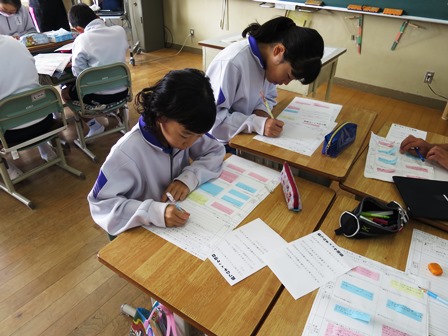 10月11日(水)今日は5年生の国語の授業研修会をしました。5年生は、自分が興味を持ったグラフや表から「社会はくらしやすい方向に向かっているか」を考え、説明する文章を書く学習に取り組みました。ミサイルの発射件数や待機児童が増えている現状からくらしにくい、火災・事故の件数が減っているグラフからくらしやすいとそれぞれ考えていました。これを、友だちに伝えるために文章に書き表す学習をしました。「書く力を高める」ことを今年度高尾小学校はとり組んでいます。書き方を学び、自分の考えをすらすらと書く様子に、どの学年も伸びを実感します。