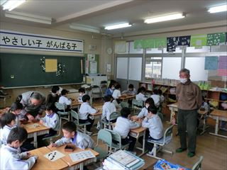 2月1日、講師の先生2名をお招きして1・2年生が2回目の囲碁教室を行いました。1回目に教えて頂いたことを思い出しながら2回目を行いました。実際に友達と対戦しながら腕を磨きました。「楽しかった。」との感想をもつ子どもたちが多かったです。1年生は来年も楽しみです。