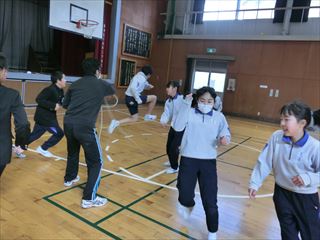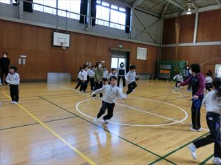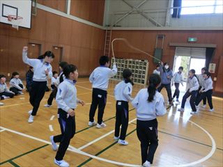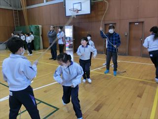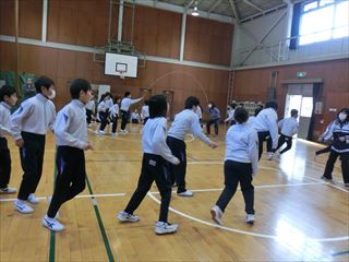 2月3日、健康環境委員会の主催で全校で長縄大会を行いました。どの学年も体育の時間を使って練習した成果を発揮していました。県の「チャレンジランキング」にも登録できるので、熱も入っていました。県のランキングの上位にはなりませんでしたが、学年同士数え合いながら跳びました。「みんなで力を合わせる」心地よさを感じることができました。