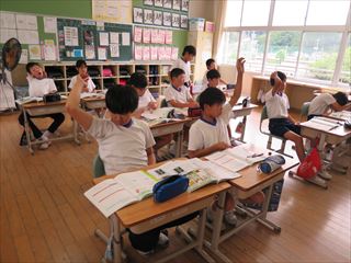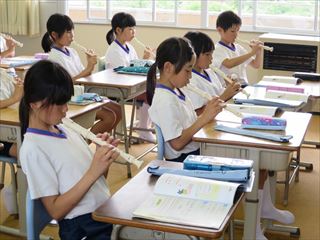 6月6日(火)の授業風景です。3年生は音楽でリコーダー練習、4年生は外国語活「I can play~」、6年生は家庭科「朝食の役割」です。3年生もリコーダーの運指がとても上手になってきました。4年生はジョニー先生とBINGOゲームをしながら英語会話を楽しんでいます。