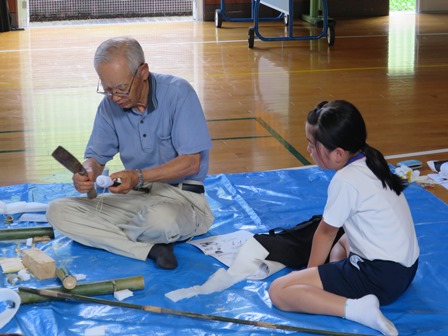 7月7日(金)長寿会の方の指導のもと4年生の竹細工教室が行われました。