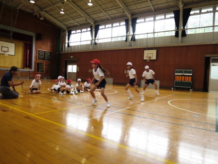5月31日(木)今日で5月も終わりです。今日は新体力テストを全校で実施しました。縦割り班に分かれ、反復横跳び、上体起こし、立ち幅跳び、50m走、ボール投げ、握力、体前屈、を行います。高学年が低学年に教えながらそれぞれ自分の体力を試していました。一生懸命取り組み、良い記録が出た時は、歓声が上がっていました。