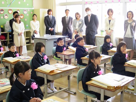 4月10日(火)今日は入学式が行われました。胸にリボンをつけた14人の1年生が入ると、空っぽだった昨日までとは全く違い、1年教室は花が咲いたように生き生きと見えました。保護者の方も地域の方も皆さんが笑顔で1年生の入学の様子を見守っていました。