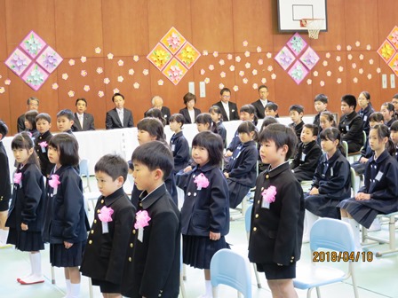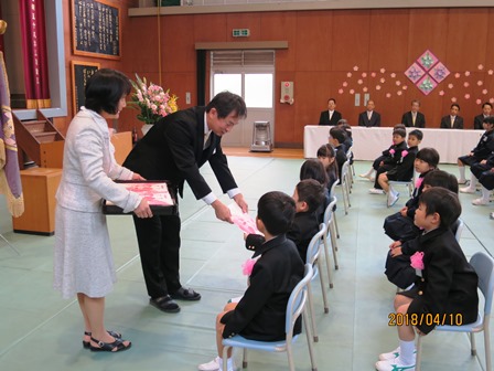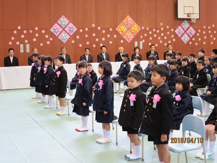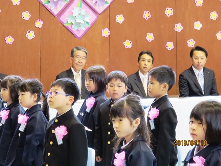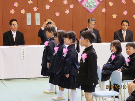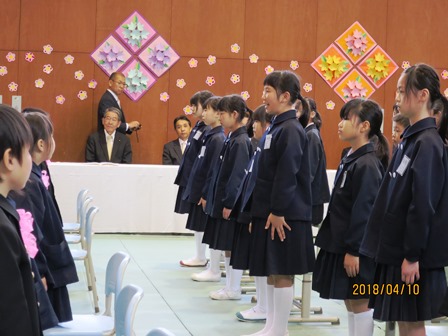 入学式では、校長先生から「はきものをそろえましょう。はきものを揃える子は何事も丁寧にできる。丁寧な子は必ず伸びる。」とお話がありました。そして教科書をいただきました。6年生の代表が「学校は楽しい行事がいっぱいあります。わからないことは何でも聞いてください。」と挨拶をしました。