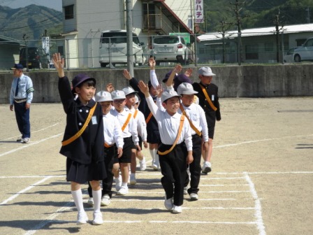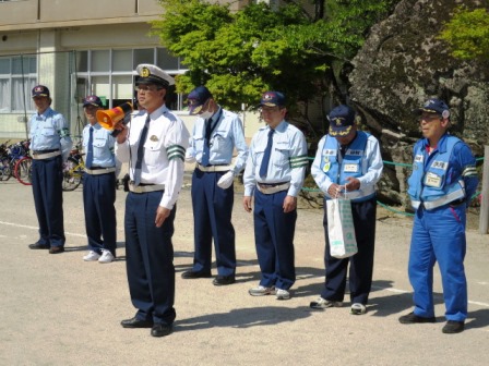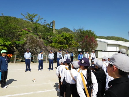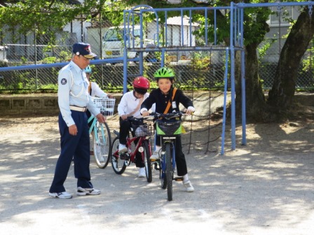 4月19日(木)今日は交通教室がありました。避難訓練と同じく自分の命を守る大切な学習です。新見警察署や岡山県交通安全講師団・交通教助員の方9名が指導に来てくださいました。
