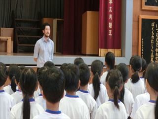 2学期から、新しいALT(外国語指導助手)の先生が高尾小に勤務します。イギリス出身のジョニー先生です。8月26日に着任式を行いました。子どもたちの感想は「マッシュー先生に似ている。」です。早速1・2年生と学習しました。前任者のマッシュー先生同様、子どもたちと仲良くなって、新見市や日本のよさをしっかり感じてほしいです。そして子どもたちには一層英語に親しみをもってほしいです。