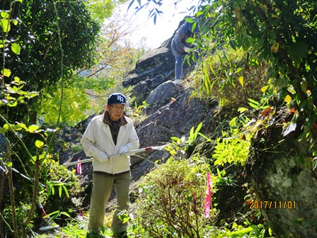 高尾小学校の敷地内には、早乙女岩という歴史ある岩があります。今日は高尾学区の健親会の皆様が、早乙女岩の周囲と学校の樹木の剪定に来てくださいました。2時間半ほどの作業で、すっかりきれいに刈り揃えられて、岩の頂上の東屋も見えるようになりました。献身会の皆様、ありがとうございました。