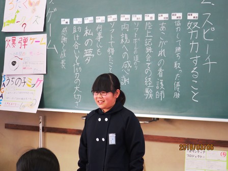 3月6日(火)今日は今年度最後の授業参観日でした。各学年とも、1年間の成長をお家の方に見ていただこうと張り切っていました。鉄棒や縄跳びができるようになったこと、音読を上手できたこと、九九を言えるようになったこと、成長と感謝の言葉、楽しく興味を持って実験を出来ること。子どもの姿はそれぞれですが、見守る保護者の方は皆さん笑顔でした。