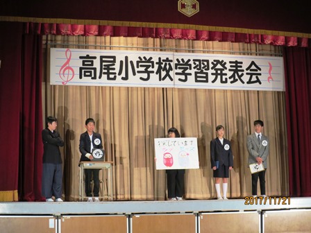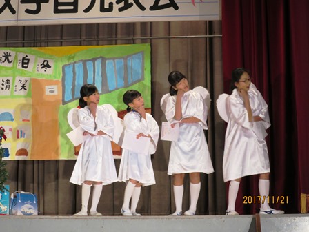 11月21日(火)今日は学習発表会の予行演習がありました。どの学年も初めて全校の前で発表するくということで緊張気味でした。開会の挨拶とともに、Ⅰ年生がはじめの言葉を元気良く言い、3・4年の音楽発表もリズム良くきれいな歌声で発表できました。そして、どの学年も今までの練習の成果を発表できました。今日の反省をいかして、25日の本番ではより素晴らしい学習発表ができるようにします。皆さんお誘い合わせの上、ぜひご来校ください。