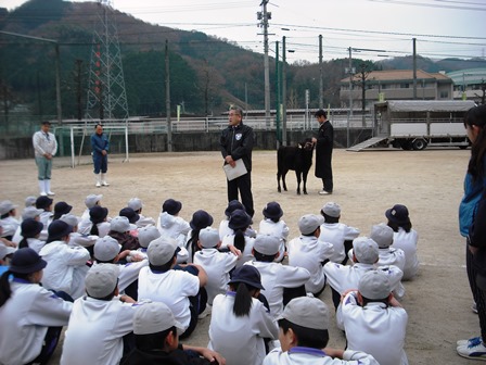 12月4日(月)今日は全校児童が楽しみに待っていた子牛が高尾小学校にやって来ました。