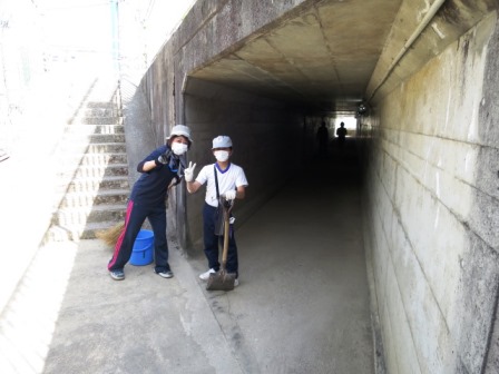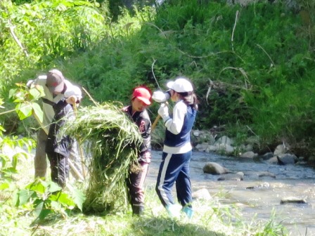 5月11日(金)今年度第1回めのクリーン作戦がありました。川の草上げ、地下道の掃除、高尾公園の草取り、道路のゴミ拾い、などを頑張りました。暑い日でしたが、ボランティアの方の力も借りて、頑張りました。