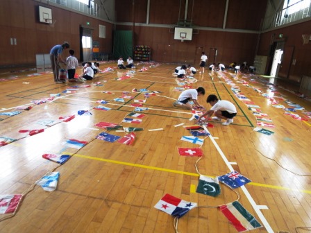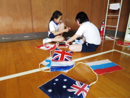 5月17日(木)今日は5・6年生が運動会に張る万国旗の手入れをしました。この作業をすると、いよいよ運動会という気持ちになります。運動会が晴れるといいなと思います。