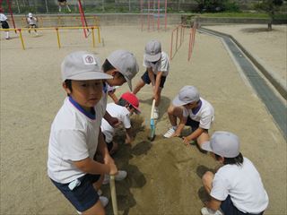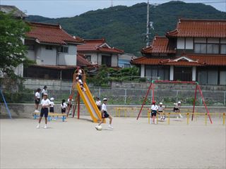 6月6日(火)今日もさわやかないい天気です。高尾小の子どもは業間にはみんな外へ出て元気に遊びます。62人が学年を超えて仲良く遊びます。ボール遊び、遊具遊び、砂場遊び、池の生物鑑賞・・・。遊びも色々でみんな楽しそうです。