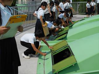 6月23日(金)今日は4年生が新見市環境教育事業「ごみの行方」の学習をしました。クリーンセンター・処理センター・新見浄化センターをバスで巡りました。クリーンセンターではごみピットや焼却の様子を見学しました。また、分別の大切さを教えていただきました。処理センター(最終処分場)では大型の粉砕器で砕かれ分別される迫力に驚きました。浄化センターでは汚水がきれいになるまでを詳しく知りました。まさに「百聞は一見にしかず」です。4年生もよく質問をし、帰りには「楽しい1日だった」と感想も言っていました。とてもいい学習ができました。