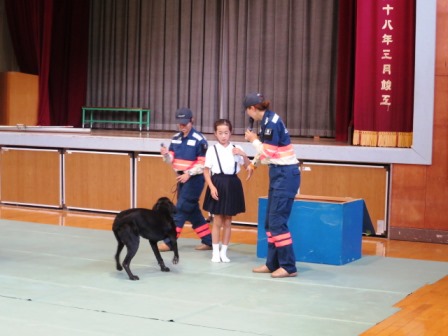また、箱の中に子どもが隠れ、嗅覚でその場所を当てるという訓練の様子も見せていただきました。素早く正確にあてられる様子に拍手が起こりました。