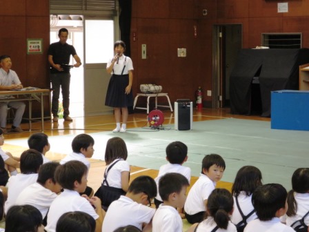 最後に児童代表として6年生が「ピースわんこジャパン」にいる犬たちが温かい家族と出会えるとよい。人も犬も同じように命を大切にしたい。貴重な話をありがとうございました。」と感想と御礼の言葉を述べました。