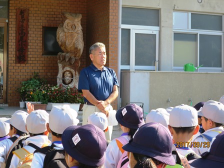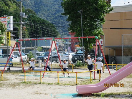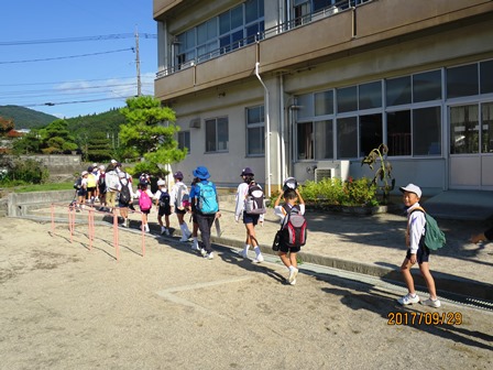 9月29日(金) 今日は6グループに分かれて冒険遠足です。ボランティアの5名の方にも協力していただき、おやつを買ったり、バスに乗ったり、新見高校や公園などにいったりします。それぞれのグループが立てた計画通り、遠足をし城山公園で集まります。