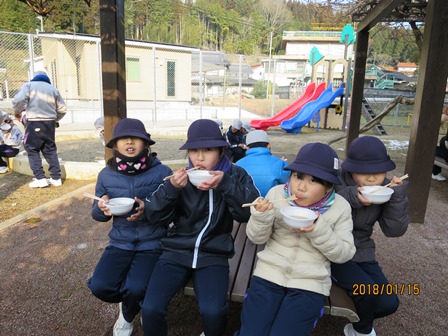 1月13日(土)公民館主催の百人一首・かるた大会に希望者16名、また、1月15日(月)のとんど祭に全校児童60名が参加しました。どちらも新春を彩る伝統行事で、準備やお世話をしてくださる高尾地域の方々に、嬉しいひとときを味わわせていただいたようです。本当に子どもたちは地域の皆様に、大切に見守られ育まれていることを感じます。