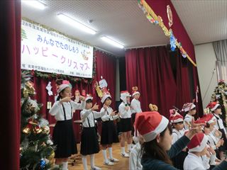 クリスマス会には、1・2年生も多く来ており、3・4年生の出演をとても喜んでいました。3・4年生にとっても自分達の演奏を学区の方々に聴いていただいたことは誇らしかったことでしょう。自分も地域の一員であることを意識できたクリスマス会でした。