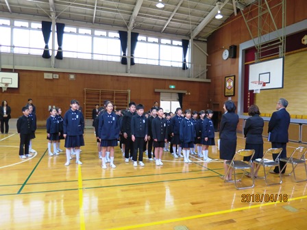 退任式では、代表児童が手紙を読んで渡しました。また、先生方から退任の挨拶をしていただきました。先生方からは「少し会わないうちに随分と成長した姿が見られて嬉しい。」「これからも支えあってより良い高尾小を築いてほしい」という内容のお話をされました。最後の校歌はいつもより心をこめて優しい声で歌う様子が印象的でした。