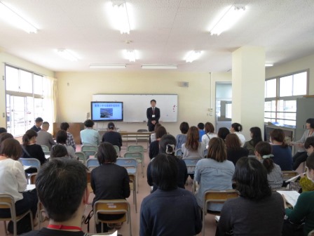 また、全体会では、田邉校長から、今年度の学校経営方針についての説明があり、その後職員紹介をしました。
