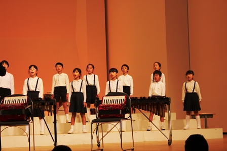 11月8日(水)今日は新見地区中学校区小中学校音楽会が、まなび広場にいみ大ホールで開催されました。高尾小学校からは3・4年生22名が参加しました。合唱は「怪獣のバラード」合奏は「千本桜」を発表しました。大きな舞台での発表で子どもたちは緊張した様子でした。ですが、合唱のピアノ伴奏が始まると、指揮の先生の顔を見てしっかりと歌うことができました。合奏もリズムよく楽しく演奏できました。子どもたちは思い通りの発表ができたことに満足そうでした。この晴れ姿をたくさんの保護者の方も見ていてくださったそうです。ありがとうございました。
